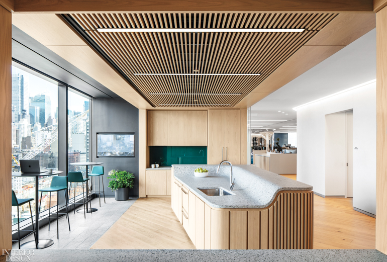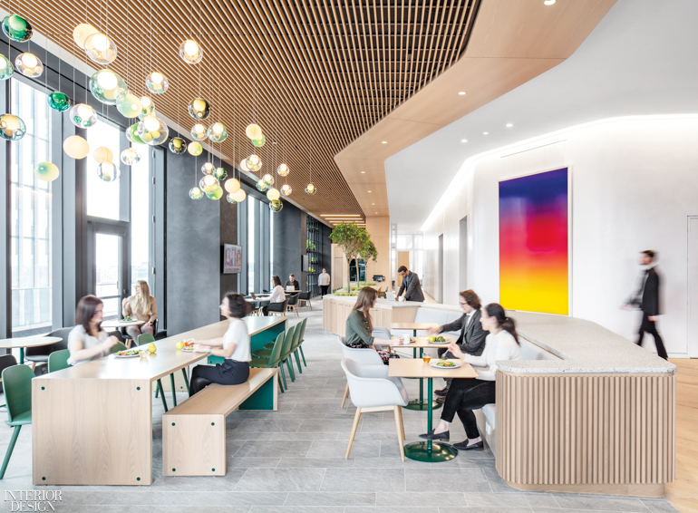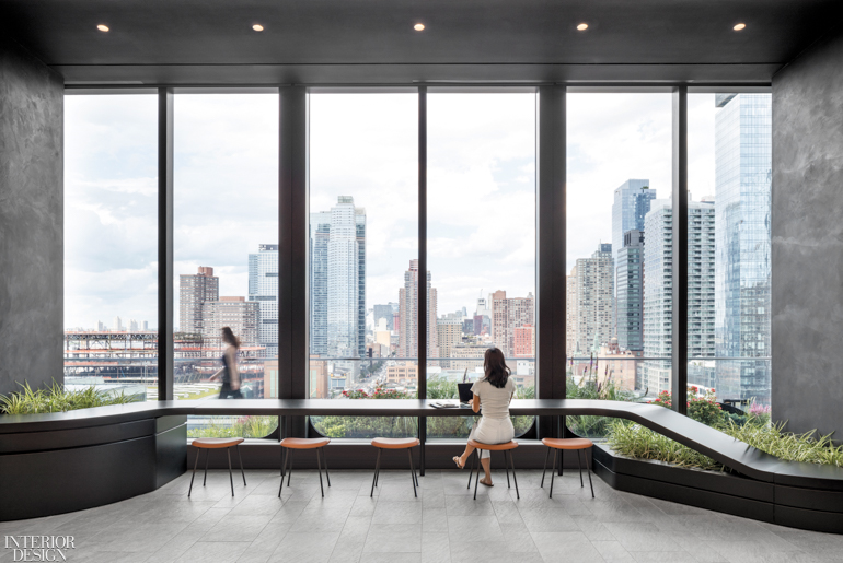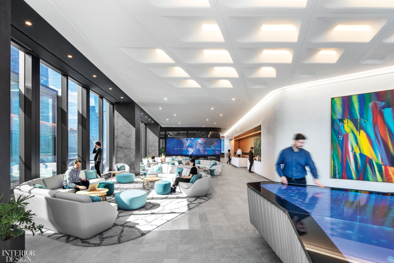 This floor sets the tone and ethos for the office. “It’s where employees can get away from their desks, re-energize themselves, and even spend time before and after the bell,” A+I senior associate Vivien Chin says. The designer notes that workers in fintech industries, especially millennials, are expecting more from the office environment, and these firms are competing with companies like Google and Facebook for the best and brightest. “Staying focused on people and their needs is a way to attract them, and also a way to encourage productivity,” she adds.