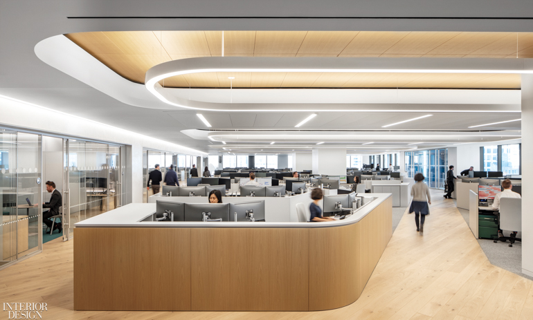 Mergers are a driving principle in American business. In 2016, the owner of a financial-services firm with separate divisions in two different New York buildings wanted to make them feel like a single company. Each group had outgrown its offices, so he hired Architecture + Information, the firm founded by Interior Design Hall of Fame members Brad Zizmor and Dag Folger, to consolidate them under one roof.