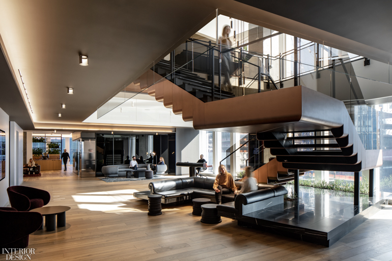 When Equinox opted to locate its new headquarters in Hudson Yards, the company turned to architecture, strategy, and experience design firm Architecture +Information. The plan? To create a high-performance HQ that would reflect its evolving identity as a premier, luxury lifestyle brand. The workspace is designed to increase creativity and innovation by bringing people together—featuring open floor plans and interconnected levels with comfortable corners carved out for private conversations and relaxing breaks. The 117,000-square-foot HQ includes space for executive, marketing, design, construction, and operations teams all under one roof—the same roof that also shelters the brand’s largest fitness club and the first Equinox Hotel.