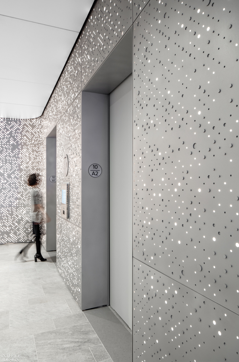 This floor sets the tone and ethos for the office. “It’s where employees can get away from their desks, re-energize themselves, and even spend time before and after the bell,” A+I senior associate Vivien Chin says. The designer notes that workers in fintech industries, especially millennials, are expecting more from the office environment, and these firms are competing with companies like Google and Facebook for the best and brightest. “Staying focused on people and their needs is a way to attract them, and also a way to encourage productivity,” she adds.